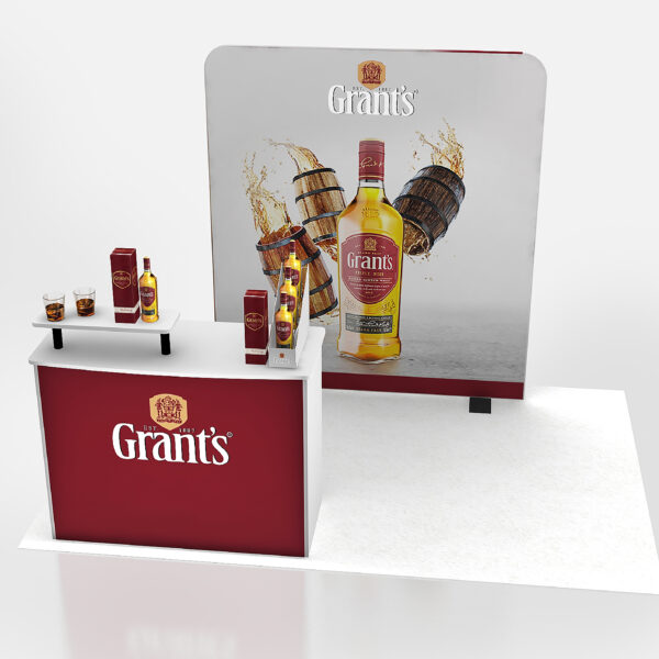 - 1 foldable aluminum backdrop with steel base – Large format eco-friendly dye-sublimation print
